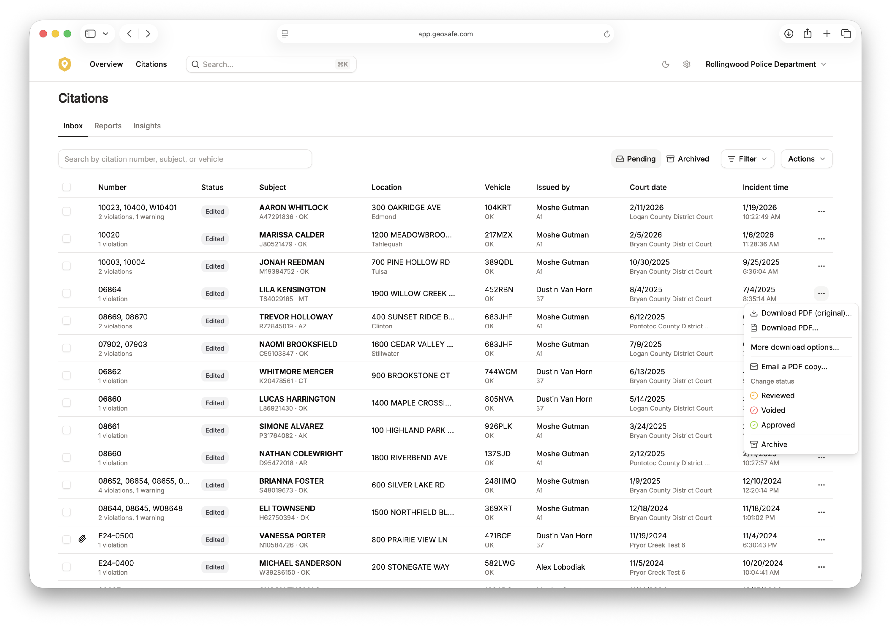 You can download a PDF copy of a citation for record-keeping, review, or sharing. PDFs can be downloaded directly from the Inbox or in bulk using the download dialog.